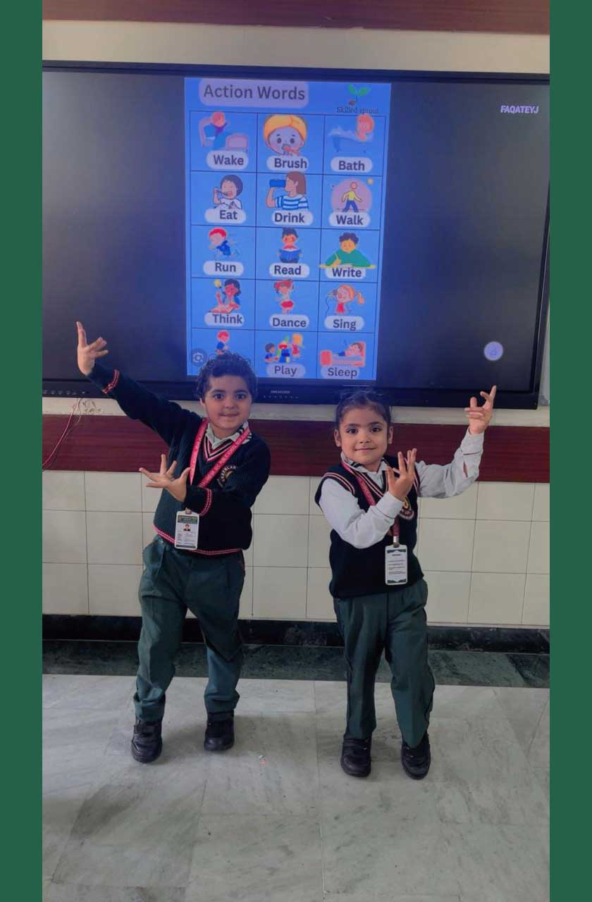 The tiny tots of Pre-Nursery enthusiastically participated in Circle Time, where they confidently gave a delightful class presentation on Birds. The students of Nursery, LKG and UKG took part in an exciting Action Words Activity. Through role play and expressive movements, children demonstrated various action words, making language learning lively and meaningful.