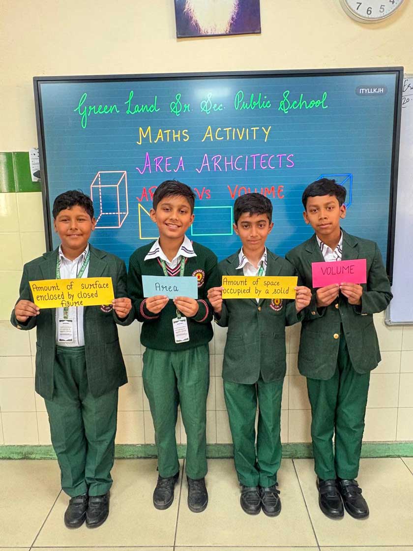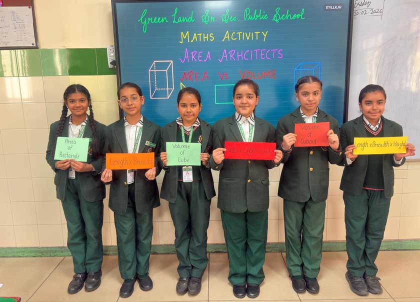 Green Land Senior Secondary Public School organised an innovative and engaging mathematics activity titled “Area Architects” for the students of Classes III to V. The activity was based on the concept of Perimeter versus Area, aiming to strengthen students’ conceptual understanding through hands-on learning.